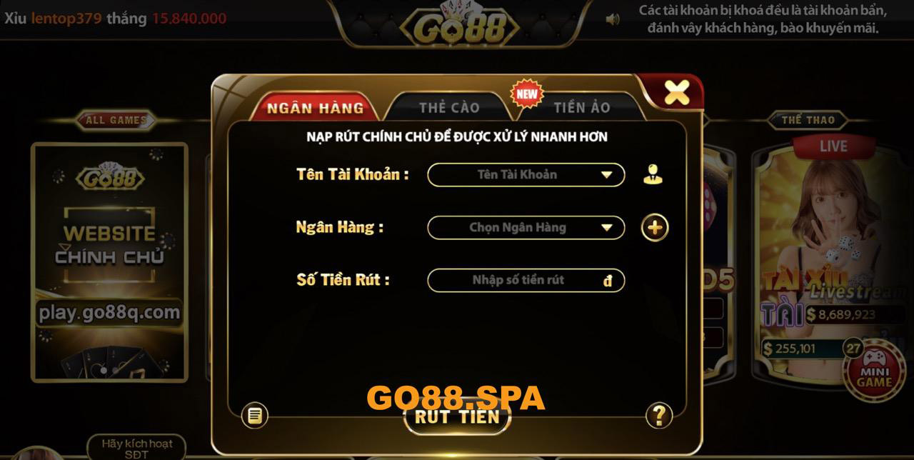 Rút tiền Go88 bằng ngân hàng